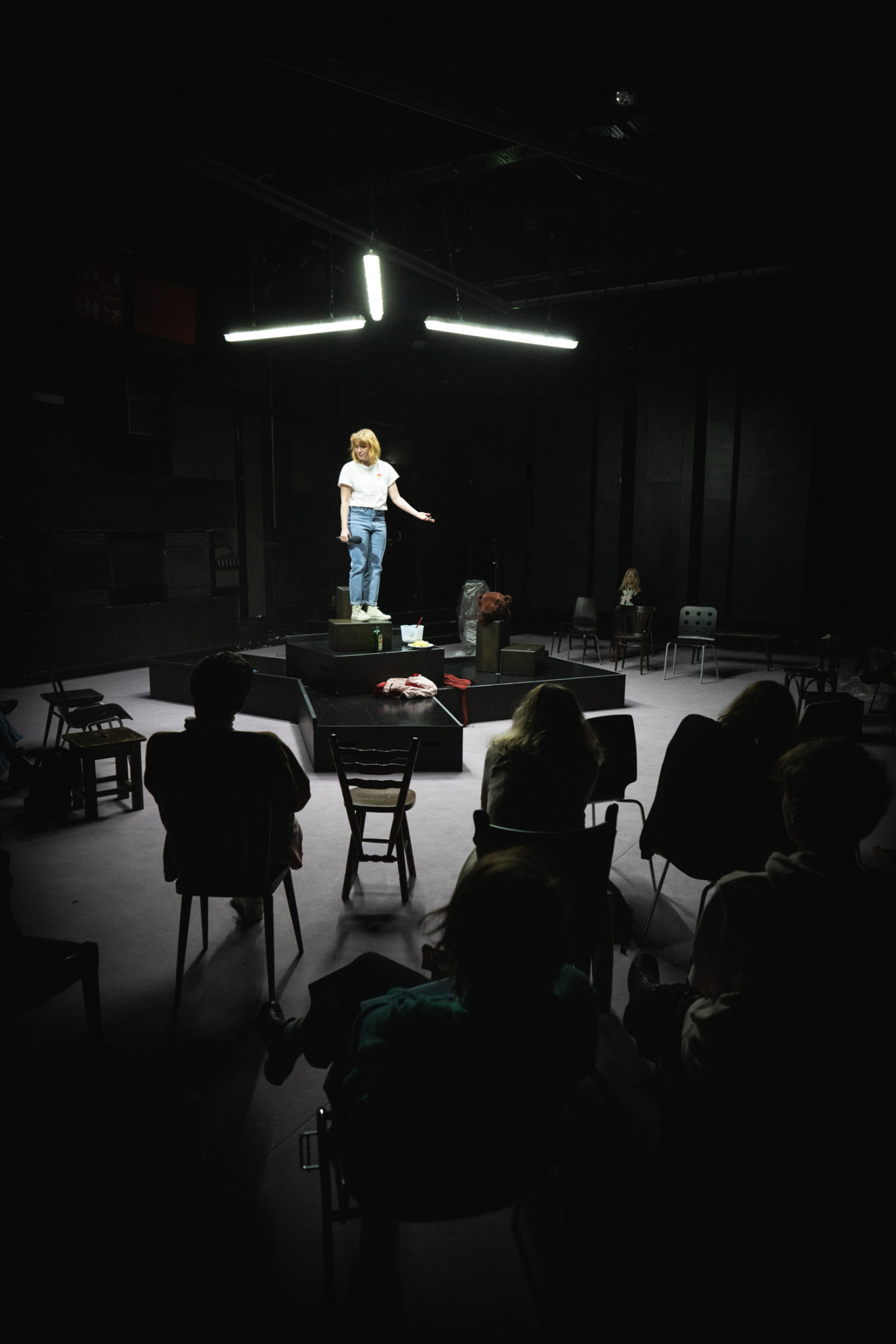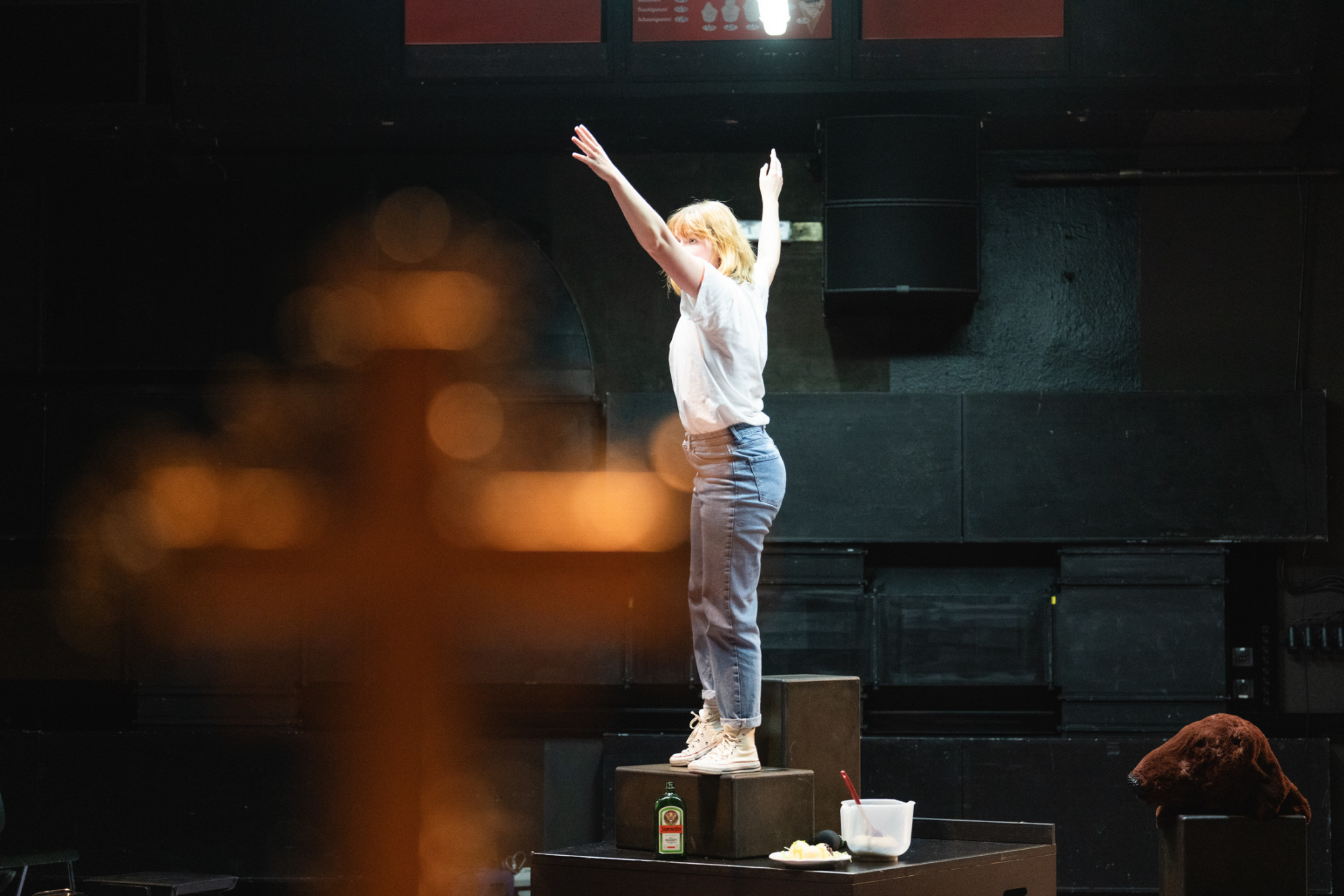 Mit Marlene Hauser hat Michelitsch dafür eine Schauspielerin zur Hand, die sich fulminant in diesen Reigen der Figuren stürzt und die Eskalation der Verhältnisse souverän auf die Bühne zimmert. Doch Text und Inszenierung erlauben ihr auch Momente, in denen sie all die Figuren der Partygäste, in die sie schlüpft, abschütteln und die inneren Konflikte der Erzählerin ins Rampenlicht stellen kann. Denn auch bei ihr verschwimmen Sein und Schein immer mehr, und man beginnt sich als Zuseher zu fragen, ob außer ihren Schuldgefühlen ihrer entfremdeten Schwester gegenüber, die stets unter der Oberfläche köcheln, eigentlich irgendetwas an ihrer Erzählung real ist. Ja sogar das Erdbeereis, das am Anfang von allem stand, hat noch nie eine echte Erdbeere gesehen.